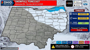 An Alberta Clipper with a potent cold front will move across Ohio on Wednesday, with lake effect snow developing by